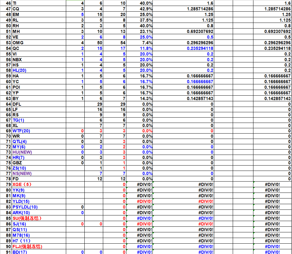 公主酱16年11月1.png928×848 37 KB2.png931×810 24.8 KB 以上就是十月的统计内容啦,看到好几个战队补上负债本公主还是很开心的~这个月莫名奇妙负债的战队就只有一个xge的说,不知道迅哥儿们都去哪里啦~ 另外本月冻结战队有四个,分别为sf,magi,su,flj 希望大家在十一月的友谊中继续取得好成绩哦 还有,关于囤积战报的事情,如果以后再发现没有日期标明的战报,全部删除哦,希望大家多多注意啦~