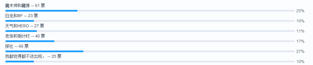 【魔术师与魔弹】这个选项在两个投票都是排名第二高,明明这两者都拥有竞技实力啊!
